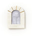 Expanding the Mukhendu Collection this hand carved picture frame features ethically sourced, cruelty free bone tile in a arch shape with brass accents. For convenient display this photo frame features a one-way table top easel. Frame accommodates 5.5x3.5 photo or print, easily accessed with metal swivel tabs and removable back. Frames in various shapes, sizes, designs and colors, can be displayed together to make a unique gallery wall display.
