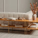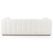 Wide, vertical channeling and low styling speak to the modish Italian influence of this sofa. Upholstered in a pristinely tailored high-performance fabric that feels like a blend of linen and boucle.
