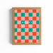 A festive Merry Christmas card in a modern red and green checkerboard pattern.