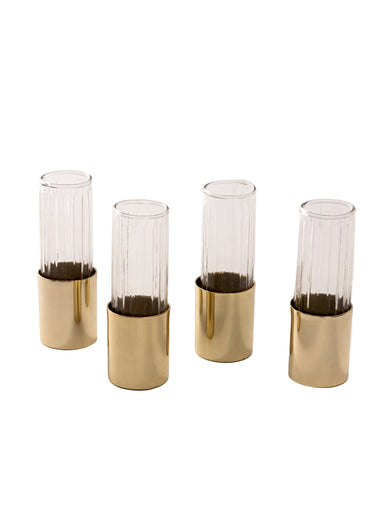 Fluted Glass Bud Vases, Set of 4 Crafted with traditional glassblowing techniques, these mini beauties feature a linear pattern with a gold base pl...