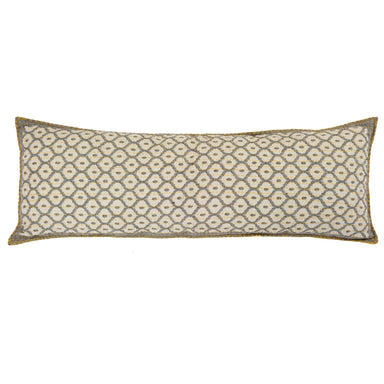 ARTISAN HAND LOOMED COTTON LUMBAR PILLOW - GRAY with YELLOW STITCHING - 16"X48" A delightful accent for your bed or couch, this hand-loomed cotton ...