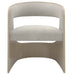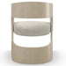 The Balance Chair by Caracole effortlessly exudes contemporary style with its curved, partially open barrel-back design. An arcing, appealing design produced in Sun Drenched quarter sawn oak, the chair features a seat that appears to float while adding warmth and visual appeal. The plush, warm fabric of the seat enhances the wood's natural appeal, making a modern design statement as a single example or with several sets near each other to create relaxation or conversation.