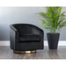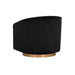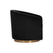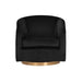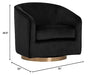 Details: A stylish and comfortable swivel chair perfect for living, lounge and office spaces. Features a barrel back design upholstered in blush, burgundy, deep green, black and navy sky velvet fabric. A brushed antique brass round base with 360 degree swivel completes the design.