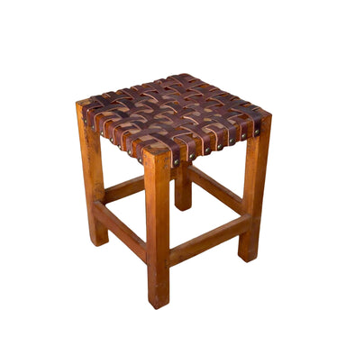 Escabel | Leather Woven Stool Dimensions: 21" tall, square seat is 15" wide Materials: Cedar wood, natural Paraguayan cow leather Our take: sturd...