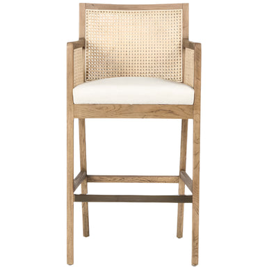 Description Mixed materials refresh retro bar seating. Toasted parawood frames a textural inlay of natural cane for a clean, monochromatic look,...