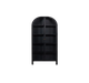 Arch appeal. Our modern bookcase showcases an arched top, adding a touch of elegance to your space. The iron frame supports five wooden shelves, each with an 86.8 lb. weight capacity, making it perfect for displaying your favorite reads, decor, and more. Glass doors keep your items protected, while a finished back allows for versatile placement. Plus, a wall anchor ensures added safety. Elevate your home library with this eye-catching piece.