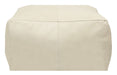 Optimize your space and add some charm to your room with the 22-inch ivory leather pouf ottoman. Add chic style to your space with this fun pouf that not only looks cool but can be a great foot rest or extra seat when needed. Expertly upholstered with padding in a soft genuine leather, this ottoman is as comfortable as it is good looking. Easy to blend into most any room, a ottoman is a way to add a good looking accent to your space that can also be practical and useful. 13-inch H x 22-inch W x 22-inch D