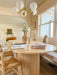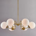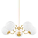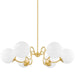 Art nouveau meets midcentury Italian, the Havana wall sconce and chandelier indulge in of-the-moment, whimsical design. Available in aged brass, Havana is engaged in shape play and features a wavy arm and glossy opal globe shade. Available in small and large chandelier.