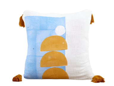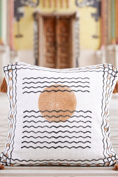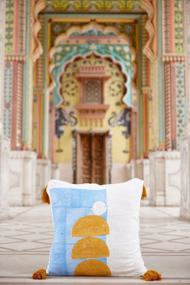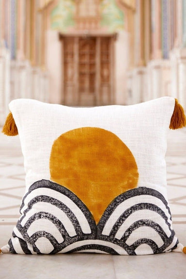 A bold symbol with quiet strength. This 100% cotton pillow cover is hand block printed with a striking nazar motif—an age-old design believed to wa...