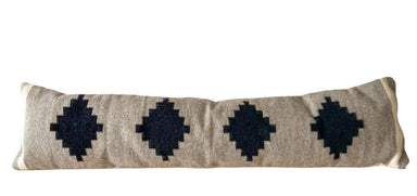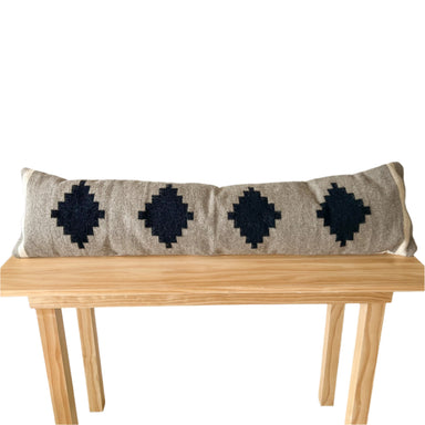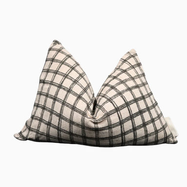 Woven pillow cover in New Zealand wool with a checkered pattern. Handcrafted in India. Cotton Canvas Back.Handloom Cut Shuttle WeaveFront - 80% NZ ...