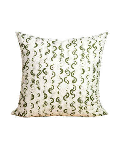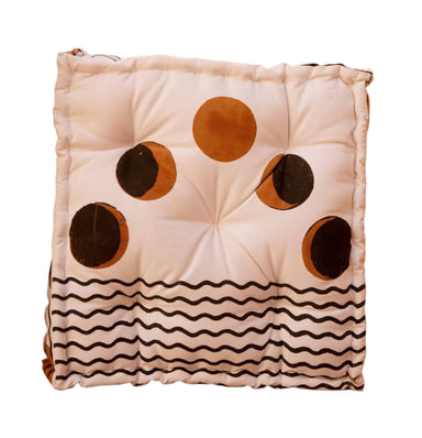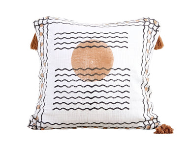 This fabric is a tan pattern on a natural cotton. Pattern printed on both sides Made in USA. Fabric is hand-block printed in India. Invisible zippe...
