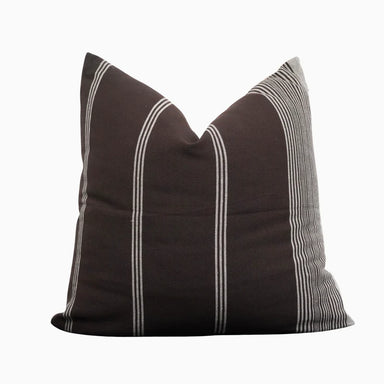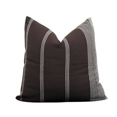 This fabric is a brown stripe printed on a natural cotton. Pattern printed on both sides Made in USA. 100% cotton. Invisible zipper, serged edges. ...