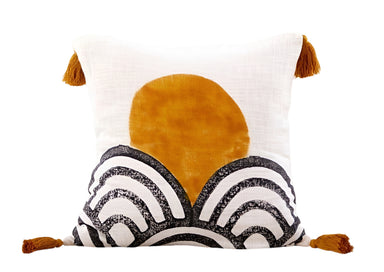 Inspired by textiles from Africa, this eye-popping pattern is striking in ochre. 12″ x 20″ knife edge decorative pillow cover. Hand screen printed ...