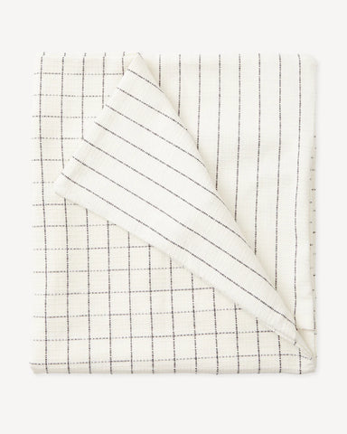 This fabric is a natural background with gray stripes and a ruffle edge. Variations in printing and color are to be expected due to the handmade na...