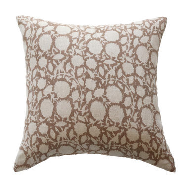This fabric is a tan pattern on a natural cotton. Pattern printed on both sides Made in USA. Fabric is hand-block printed in India. Invisible zippe...