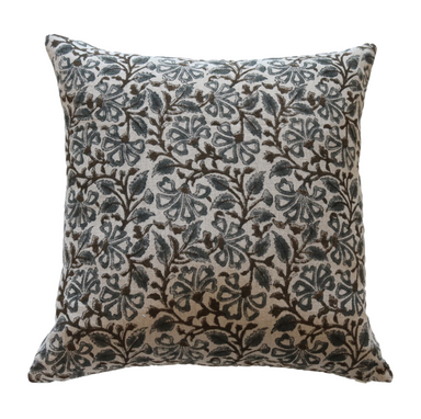 A classic form reimagined in craft. This 100% cotton pillow cover is hand block printed with a floral repeat pattern, using carved wooden blocks di...