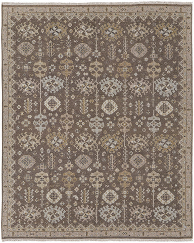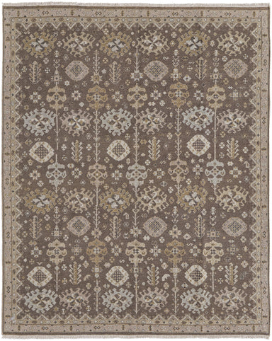 Add some artistry to your room with this 9-foot x 13-foot gray and brown wool oriental hand knotted area rug with fringe. This rectangle shaped rug...