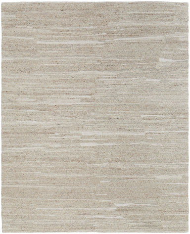 :: Plain-weave kilim with horizontal banded stripes in soft shades. Colors and shades include: Platinum, silver, beige, ivory, dusty mauve, dusty p...