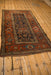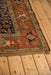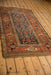 :: Main field in a geometric Herati design motif with wide banded Samovar stylized main border. Colors and shades include: Navy blue, terracotta, dusty sky blue, aubergine, antique ivory, dusty sapphire blue, cobalt blue, powder blue, coffee brown, chocolate brown, faded rose, and more. Condition notes: Even wear across to knot heads with faint foundation showing through. Most of the original side cord selvages are intact or restored. Mostly secure sides and ends. Recently professionally cleaned ready for in-home use! Many years of enjoyment to come with this hand knotted Persian Kurdish Hamadan rug made in Persia circa 1920's vintage. Size measures 3'9" x 6'7".