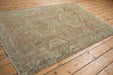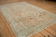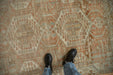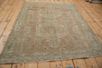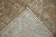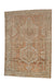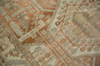 :: Double oversized center medallion with end finials in pomegranate stylized cross view with interior germinating blossoms. Main field with delicately outlined panels with vines and stemmed buds blossoming therefrom. Main border in a meandering serrated vine. Colors and shades include: Pale terracotta, pale copper, ivory, dusty powder blue, silver, and more. Condition notes: Mostly even wear across to knot heads. Most of the original side cord selvages are intact or restored. Fully secured sides and ends. One side measures 6'7" whereas the opposing measures 6'. Both ends professionally reduced to the main border. Recently professionally cleaned ready for in-home use! Many years of enjoyment to come with this hand knotted Persian Malayer rug made in Persia circa 1940's vintage. Size measures 4'7" x 6'7".