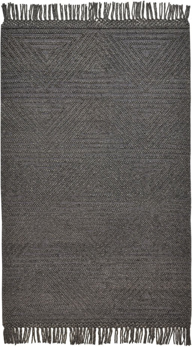 Set an inviting tone in your space with this 5' x 8' black and gray wool geometric hand woven area rug with fringe. This rectangle shaped rug featu...