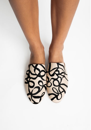 ARTISTIC NOTES Beige Abstract Palms Black Mule A symbol of victory and praise in the Mediterranean, reinvented with a modern shape. PRODUCT DETA...