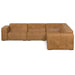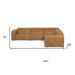 Superior construction from fabulously soft and high grade leather gives this 116-inch sienna leather modular sofa with brown legs a leg up on the competition. The premium leather used makes your lounging luxuriously comfortable and adds an elegant appeal to your space. Solid colors give you lots of decorative options and are easy to work into your decor scheme. Web suspension construction gives this piece strong support and makes it comfortable to sit even for long periods of time. Fixed arms offer a comfy place to rest. A great showpiece for your room, this sofa is a must have. 27.00-inch h x 116.10-inch w x 116.00-inch d.