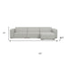 Transform your home's interior with this luxurious 122-inch gray fabric modular sofa with brown legs. Solid colors give you lots of decorative options and are easy to work into your decor scheme. Web suspension construction gives this piece strong support and makes it comfortable to sit even for long periods of time. Fixed arms offer a comfy place to rest. Built to last, this sofa will be a great centerpiece for your room. 27.00-inch h x 122.00-inch w x 69.50-inch d.