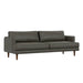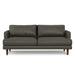 Made of the highest quality, supple leather, this 76-inch black leather sofa with brown legs will be the star of your space. The high grade premium leather used makes your lounging luxuriously comfortable and adds an elegant appeal to your space. Solid colors give you lots of decorative options and are easy to work into your decor scheme. Web suspension construction gives this piece strong support and makes it comfortable to sit even for long periods of time. Removable back cushions make this sofa easy to manage. Fixed arms offer a comfy place to rest. A great showpiece for your room, this sofa is a must have. 32.75-inch h x 76.00-inch w x 35.50-inch d.