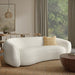 Transform your home's interior with this luxurious 89-inch cream fabric sofa with walnut legs. Solid colors give you lots of decorative options and are easy to work into your decor scheme. Web suspension construction gives this piece strong support and makes it comfortable to sit even for long periods of time. Fixed arms offer a comfy place to rest. A great showpiece for your room, this sofa is a must have. 28.75-inch h x 88.50-inch w x 39.25-inch d.
