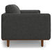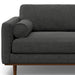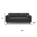 Transform your home's interior with this luxurious 89-inch gray fabric sofa with brown legs. Solid colors give you lots of decorative options and are easy to work into your decor scheme. Web suspension construction gives this piece strong support and makes it comfortable to sit even for long periods of time. Removable back cushions make this sofa easy to manage. Fixed arms offer a comfy place to rest. A great showpiece for your room, this sofa is a must have. 34.00-inch h x 88.80-inch w x 38.25-inch d.