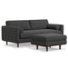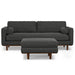 Designed for comfort and good looks, this 89-inch gray fabric sofa with ottoman with brown legs is a great option to anchor your space. Solid colors give you lots of decorative options and are easy to work into your decor scheme. Web suspension construction gives this piece strong support and makes it comfortable to sit even for long periods of time. Removable back cushions make this sofa easy to manage. Comes complete with a coordinating ottoman to rest your feet. The ottoman can also be used as additional seating option if needed. Fixed arms offer a comfy place to rest. Built to last, this sofa will be a great centerpiece for your room. 34.80-inch h x 88.50-inch w x 38.40-inch d.