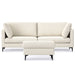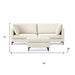 Add an air of fashion to your space with this fabulous 90-inch cream fabric sofa with ottoman with black legs. Solid colors give you lots of decorative options and are easy to work into your decor scheme. Web suspension construction gives this piece strong support and makes it comfortable to sit even for long periods of time. Removable back cushions make this sofa easy to manage. A comfy ottoman is included as part of the package. Great to rest your feet or provide extra seating in a pinch. Fixed arms offer a comfy place to rest. Black metal legs effortlessly elevate the room and add a touch of contemporary design. A great showpiece for your room, this sofa is a must have. 34.00-inch h x 90.00-inch w x 38.00-inch d.