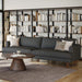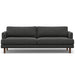 Designed for comfort and good looks, this 90-inch gray fabric sofa with brown legs is a great option to anchor your space. Solid colors give you lots of decorative options and are easy to work into your decor scheme. Web suspension construction gives this piece strong support and makes it comfortable to sit even for long periods of time. Removable back cushions make this sofa easy to manage. Fixed arms offer a comfy place to rest. A great showpiece for your room, this sofa is a must have. 32.75-inch h x 90.00-inch w x 35.50-inch d.