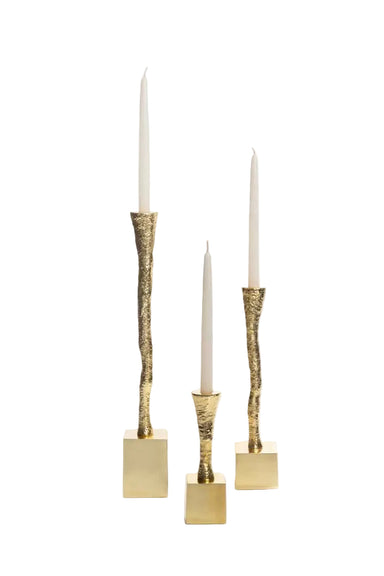 Statement-making, sculptural candle holders on pedestals make distinctive accent pieces. Sand cast and entirely hand-made by highly skilled artisan...