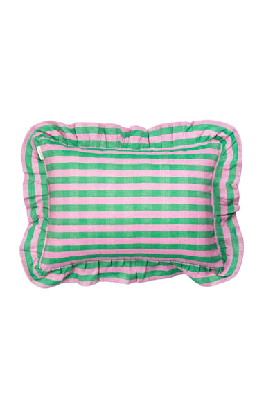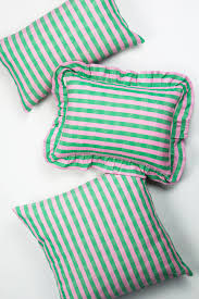 The Archive NY Flora striped ruffle pillow is the perfect accent to add color and texture to any sofa, bedroom or accent chair. Stripes of light pi...