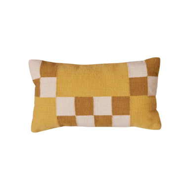 Woven pillow cover in New Zealand wool with a checkered pattern. Handcrafted in India. Cotton Canvas Back.Handloom Cut Shuttle WeaveFront - 80% NZ ...