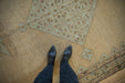 :: Diamond shaped center medallion adorned at either corner with minor medallions bearing interior potted plants with interconnected vinery to finned vines leading to additional minor medallions. Main border in a partial serpent geometric design. Colors and shades include: Antique ivory, camel, sand, dusty powder blue, dark chocolate brown, dusty denim blue, and more. Condition notes: Even wear across to knot heads with faint foundation showing through. Most of the original side cord selvages are intact or restored. Fully secured sides and ends. Heavy localized areas of restoration, mostly confined to the middle of the carpet, with possible secondary shade of dusty powder blue completely replacing the original shade. Recently professionally cleaned ready for in-home use! Many years of enjoyment to come with this hand knotted Persian Malayer carpet made in Persia circa 1920's vintage. Size measures 6'11" x 16'.