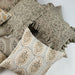 Individually crafted, linen throw pillow with a hand block-printed floral design in the beachwood color and charming ruffled edge. Complete with a zipper closure and a solid cotton backing (in a creamy hue), each piece is custom-made using skilled artistry, creativity, and traditional techniques. Available in square or lumbar sizes.
