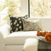 Beautifully hand block-printed throw pillow on linen fabric. Maria is our take on the traditional Indian Wedding flower, the marigold. Symbolizing brightness and positive energy, marigolds are frequently used in wedding decor. Maria features an intricate floral pattern in white and olive on a deep black baseAvailable in square or lumbar sizes.