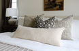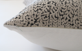 This fabric is hand printed in India. It is a natural linen background with a black hand-block printed pattern.