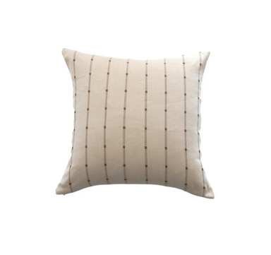 This fabric is woven in Thailand. It is a cream background with rust stripes. Patterned fabric on both sides. Pillow cover made in USA. Variations...