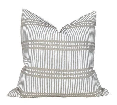 Add a New Look to your home with Designer Pillow Covers!On the Front: Dash Dot Fabric in ChalkOn the Back: Ivory Linen FabricAll pillow covers are ...
