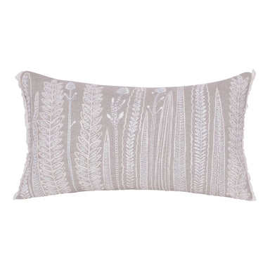Unique and decorative, this comfortable 16-inch x 24-inch natural and ivory floral linen zippered pillow with embroidery will leave a lasting impre...