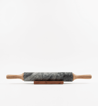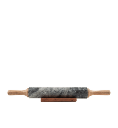 This rolling pin makes baking stylish. Made out of marble and featuring a sleek black finish, this piece also has acacia wood natural colored handl...