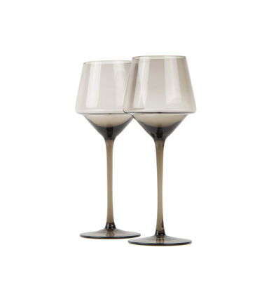 This beautiful smoke gray colored wine glass is sure to be a statement in any home. 3-1/2" Round x 9"H 12 oz.