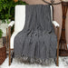 This 52-inch x 67-inch black and white woven cotton striped throw blanket with tassels brings a classic, refined style to your space. Features a woven striped design that offers sumptuous softness and texture that you'll cherish for years to come. Made from cotton this blanket will make a great addition to any room it's added to. Layering your furnishings with a decorative throw has the ability to awaken a tired living room or elevate the design of your bedroom simply by providing elements of color and texture that weren't there before. Perfect for your favorite chair, bed or lounging on the couch, this blanket helps bring a warm and fashionable flair to your space. 52-inch H x 67-inch W x 0.5-inch D