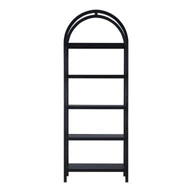 The 80" black oak wood five tier arched top bookcase offers you storage and display space in a good looking and refined manor. Crafted from sturdy ...