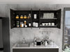 This 59-inch black wood wall mounted accent cabinet with five shelves will be the perfect addition to your dining or living space. This beautiful cabinet is made from sturdy particle board. Ideal for kitchen cabinets, can also be used in office, laundry room, play room, and more. Storage vessels don't have to be unsightly. Increase your storage space and the fashion quotient of your room with this hard wearing, versatile, and good looking cabinet. 23.6-inch h x 59-inch w x 12.4-inch d.