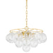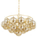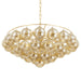 Swirl-ribbed or plated champagne glass globes dangle from an Aged Brass frame, creating this cloud-like showstopper. Whether you’re dressing up a breakfast nook with the small chandelier, adding a soft glow to an entryway with the flush mount, or making a glam statement in your dining room with the large chandelier, the possibilities for Mimi are endless. Part of our Megan Molten x Mitzi Tastemakers collection.